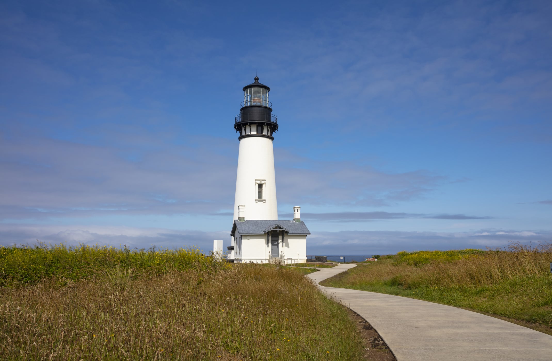 The Yaquina Head Lighthouse, Oregon’s tallest at 93 feet, is located on a narrow point in the Yaquina Head Outstanding Natural Area. It has been guiding ships and their supplies along the west coast since it was first lit on August 20, 1873.