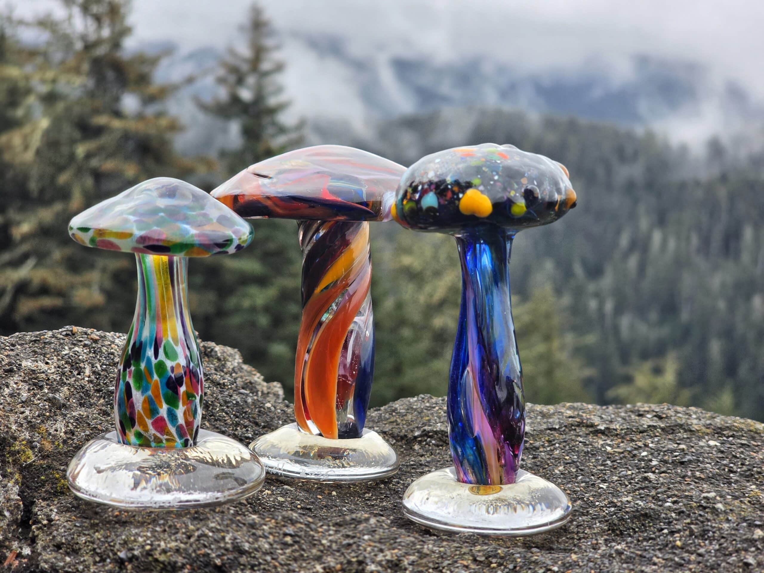 This year, three local artists are contributing their talents to create one-of-a-kind, handmade mushrooms. Paris Birdwell Designs is crafting vibrant glass mushrooms with colorful, mind-bending swirls. Billow Cloud Soaps is shaping charming soap mushrooms from their signature saltwater blend. And Swallows Nest Homemade is adding beautifully crocheted mushrooms to the mix—making for a truly unique trio to discover and enjoy!